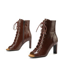 Brown Chunky-Heeled Oily Leather Dance Boots