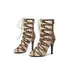 Unleash your wild side with our Crisscross Lace-up Leopard-Print Dance Boots! The unique crisscross design and lace-up closure provide a secure and comfortable fit while dancing. The fierce leopard-print adds a touch of boldness to your look. Conquer the dance floor with confidence and style!