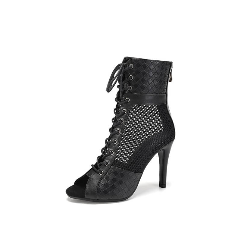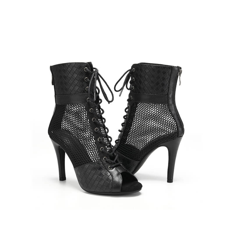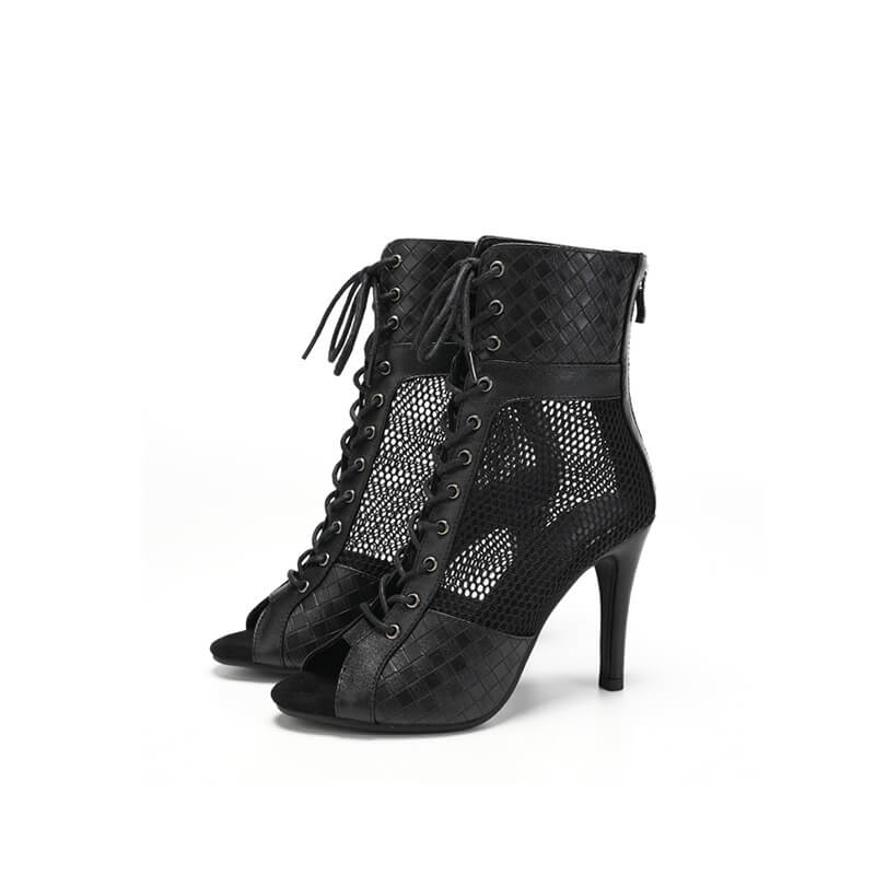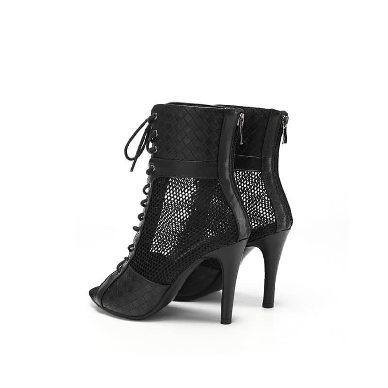 Peep Toe Lace-Up Minimalist Stiletto Heeled Ankle Boots