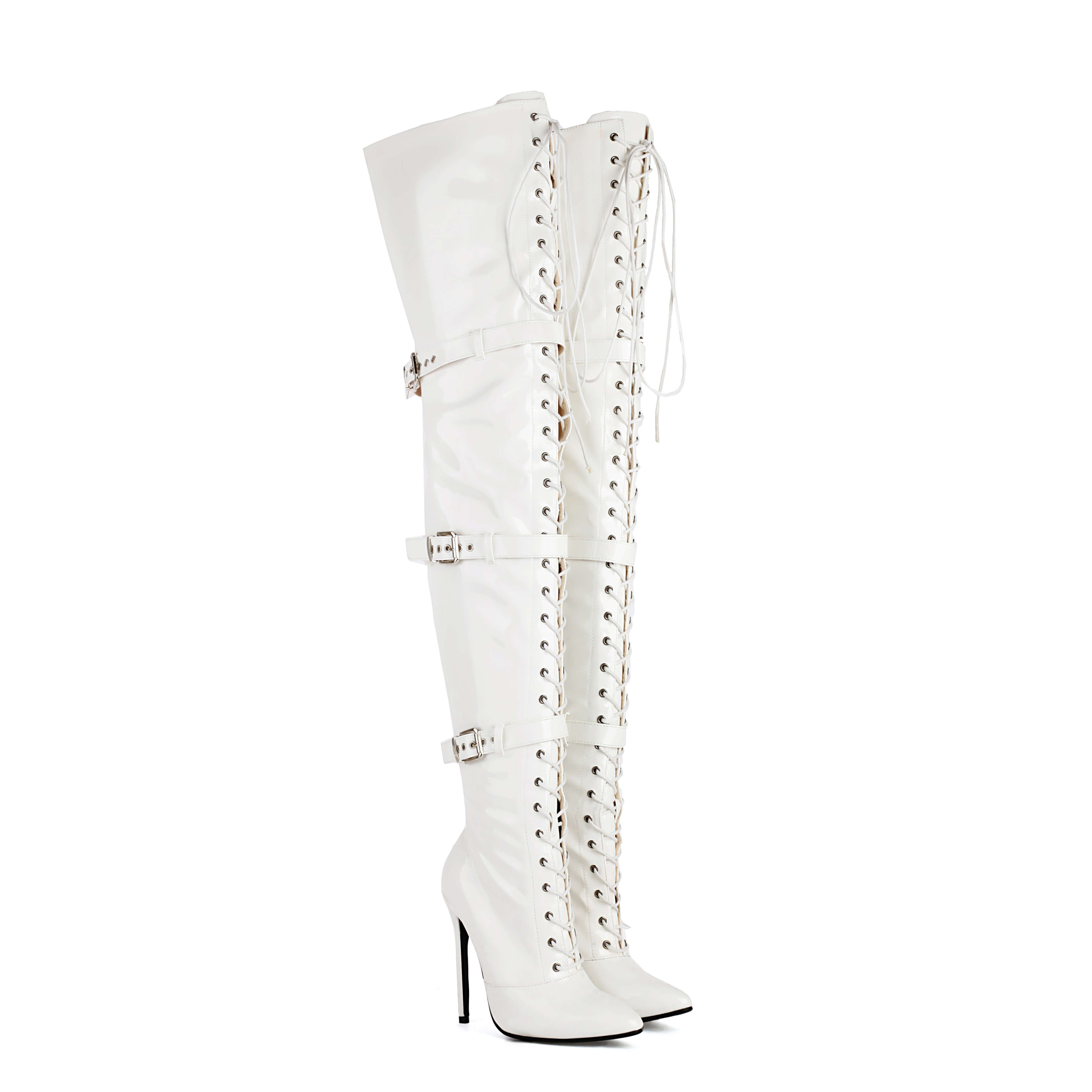 White Patent Leather Pointed-Toe Over-The-Knee Boots