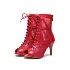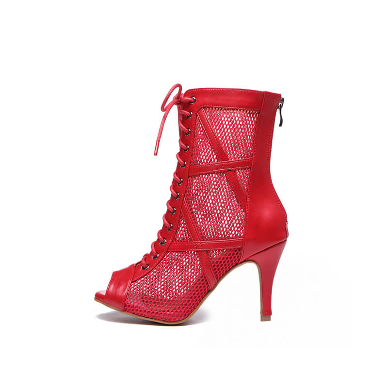 Red Lace Up Fishnet Mesh Ankle Boot