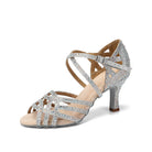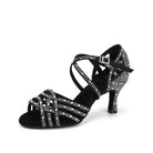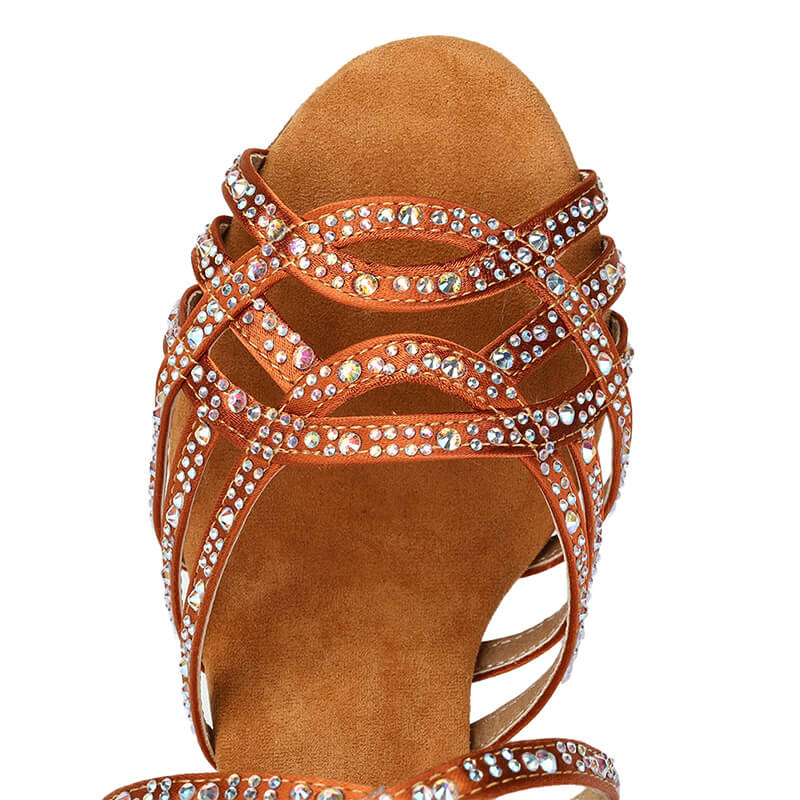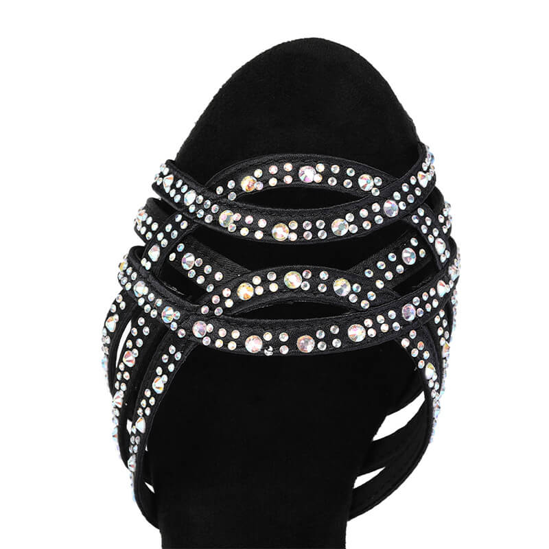 Rhinestone Satin 5 Strap High Heel Dance Shoes