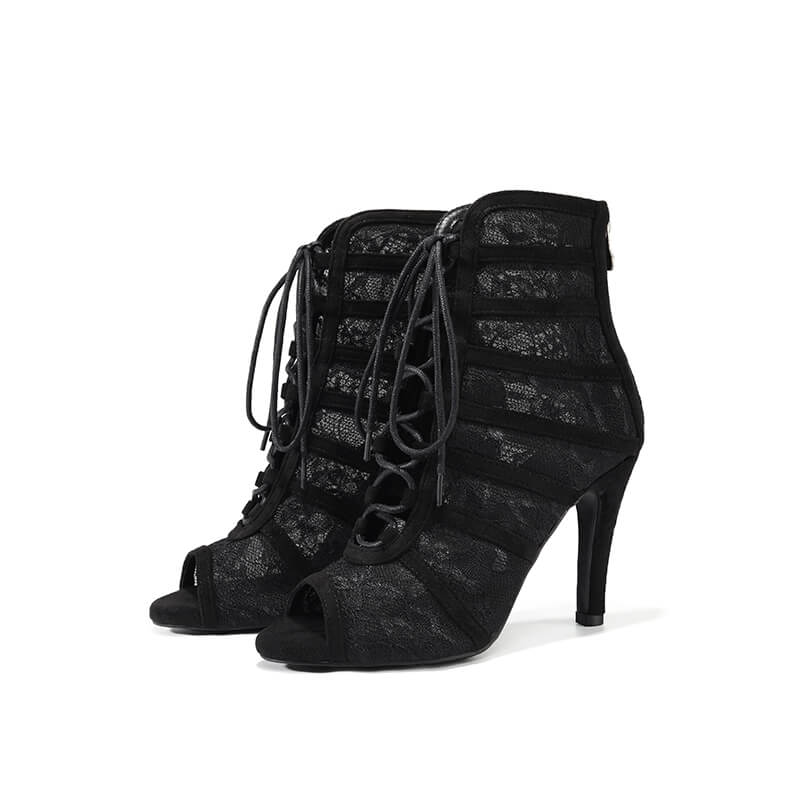 Black Lace Hollow Stiletto Dance Boots