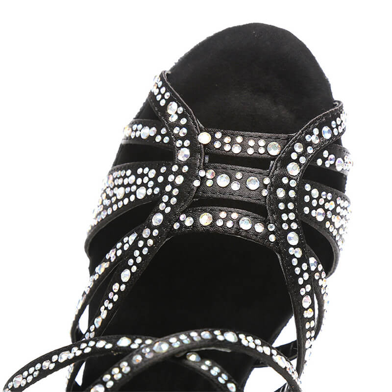 The classic black design, embellished with exquisite rhinestones and made of high-quality materials, is both stylish and comfortable, a must-have for Latin dancers.