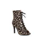 Fatti notare con i nostri stivali da ballo con lacci e stampa leopardata marrone, pensati per le ballerine appassionate ed energiche nell'animo!
