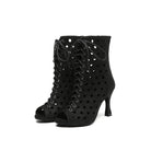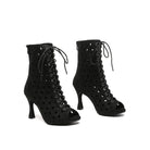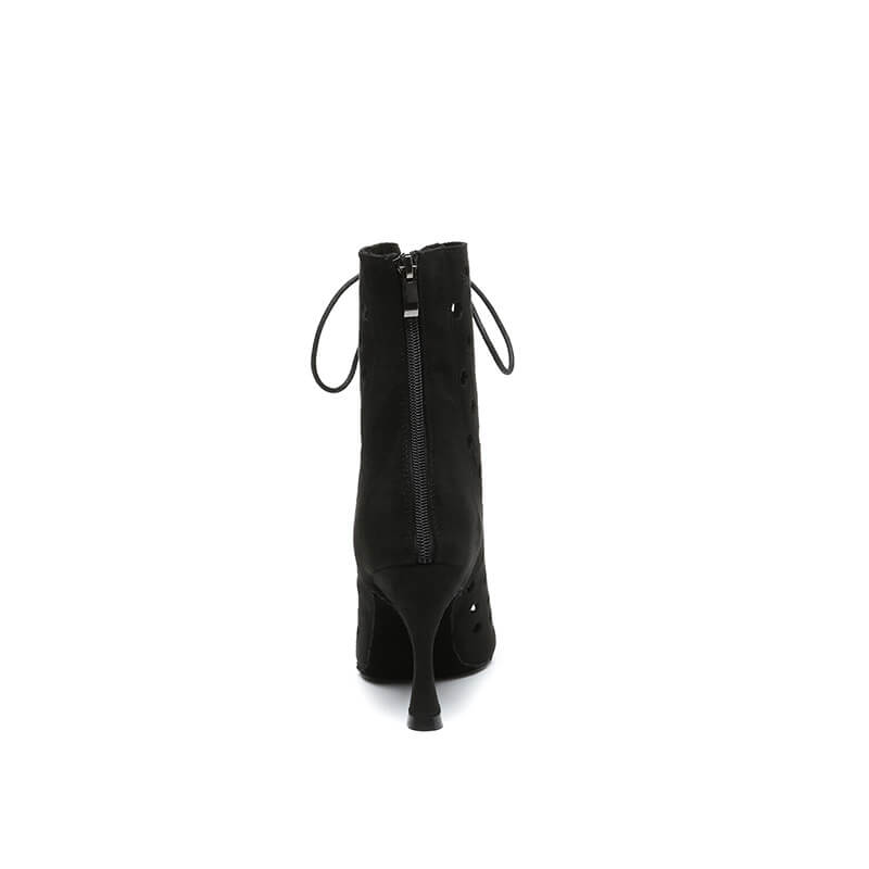 Stivaletti con tacco svasato con punta aperta in pelle scamosciata nera