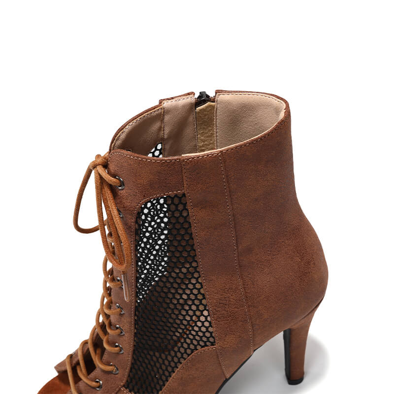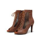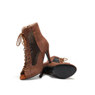 Scarpe da ballo con lacci e tacco a spillo marrone