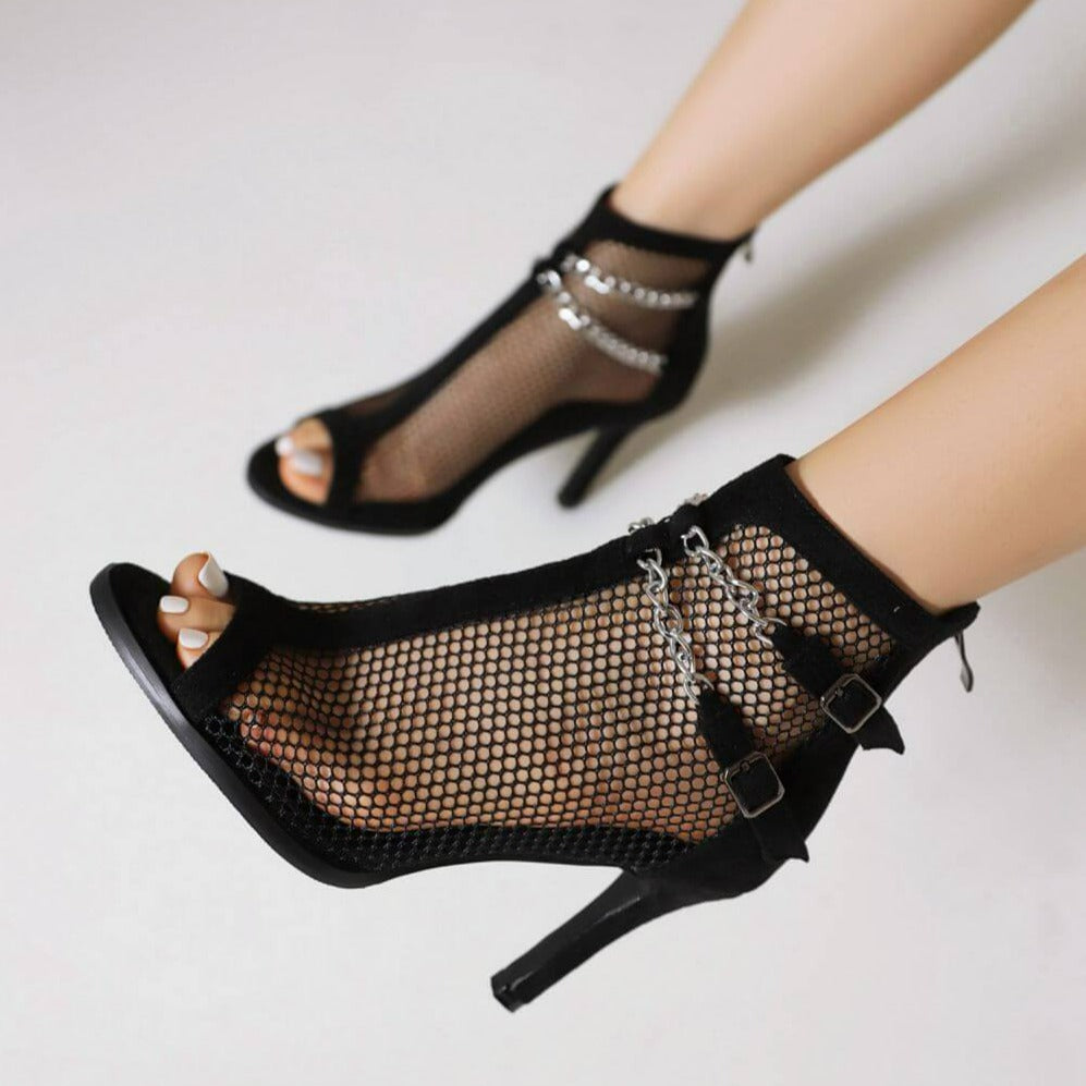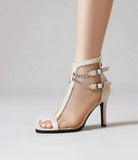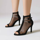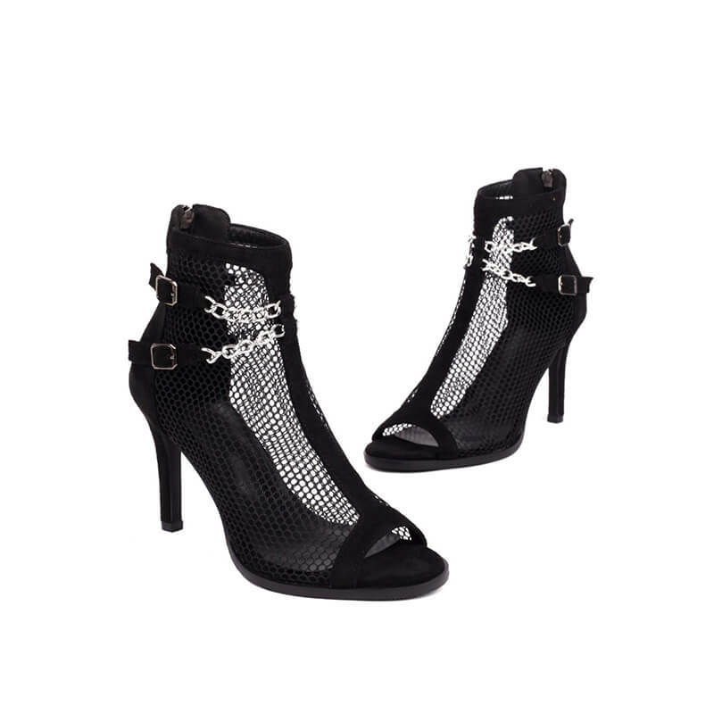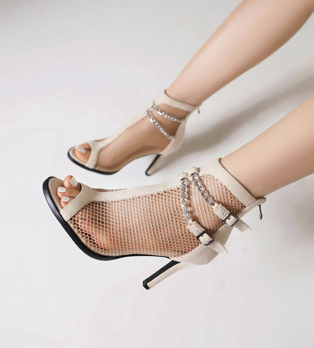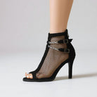 Stivali da ballo a stiletto con cinturino in rete da donna