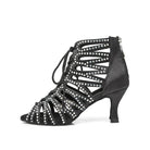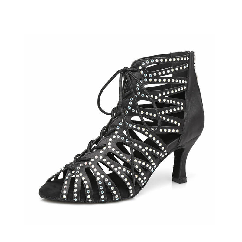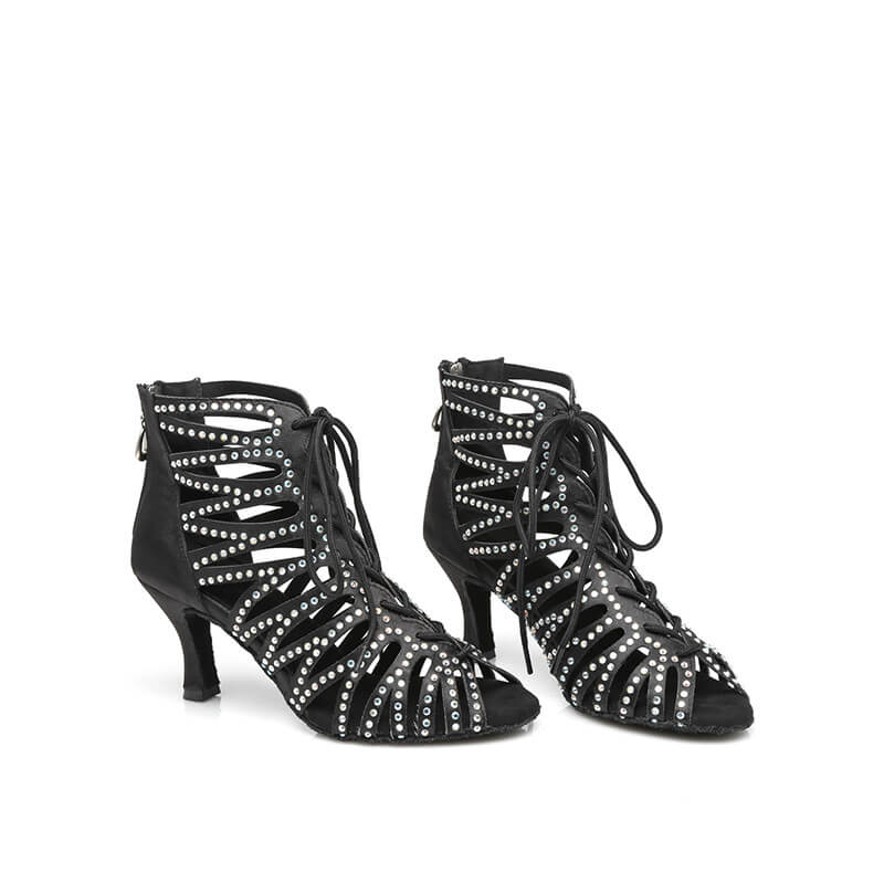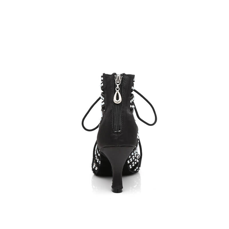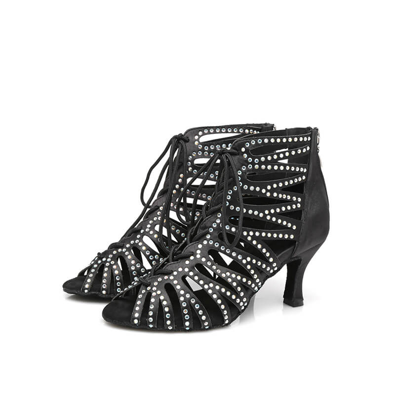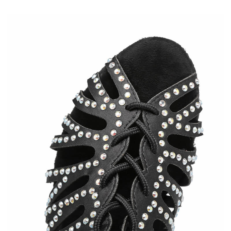Stivaletto da ballo con suola in pelle scamosciata con lacci in cristallo nero