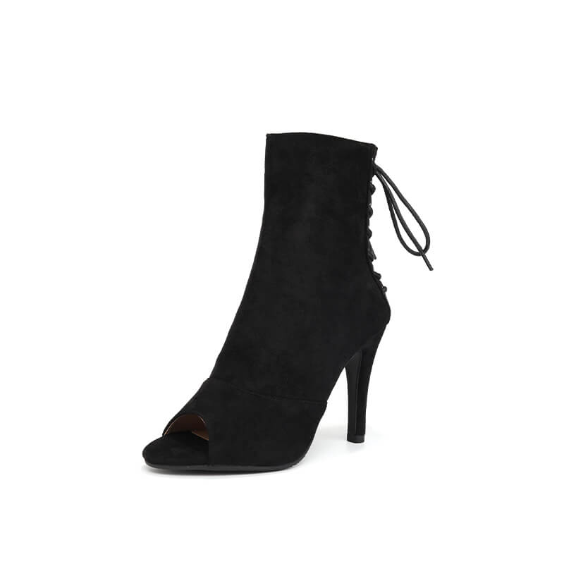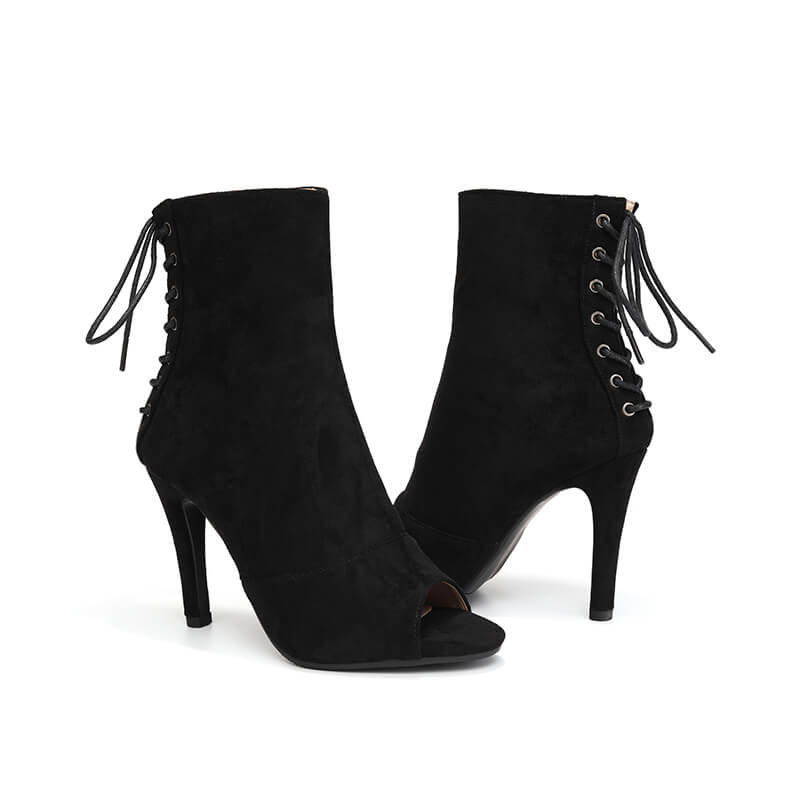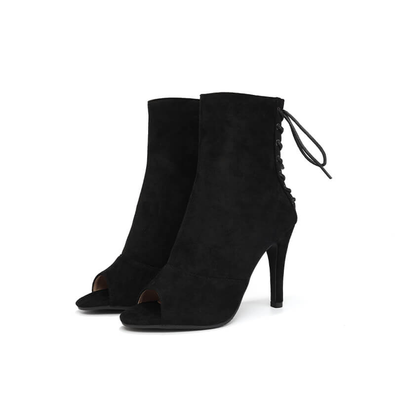 Stivali da ballo con punta aperta in pelle scamosciata da donna e tacco a spillo