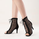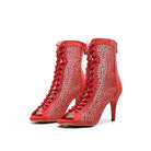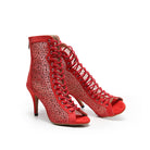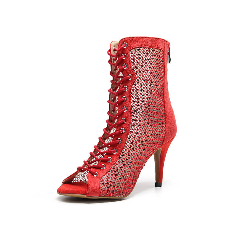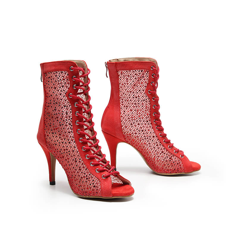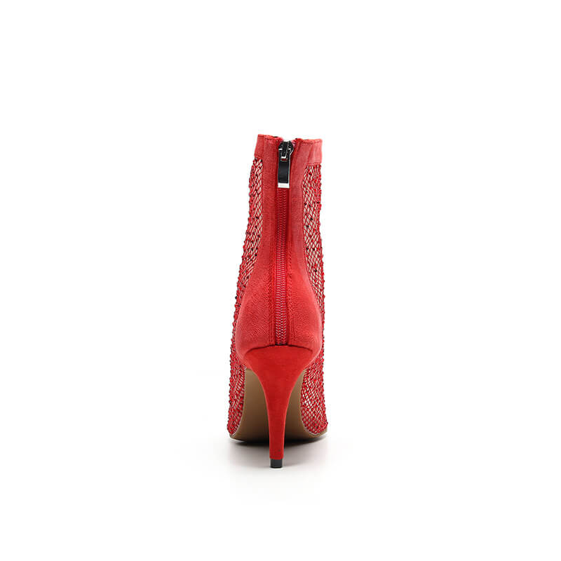 Stivaletti in rete con cinturino in camoscio sintetico con punta aperta rossa