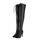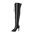 Stivali sopra il ginocchio neri opachi con punta aperta