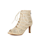 Stivali da ballo con tacco a spillo in pizzo albicocca