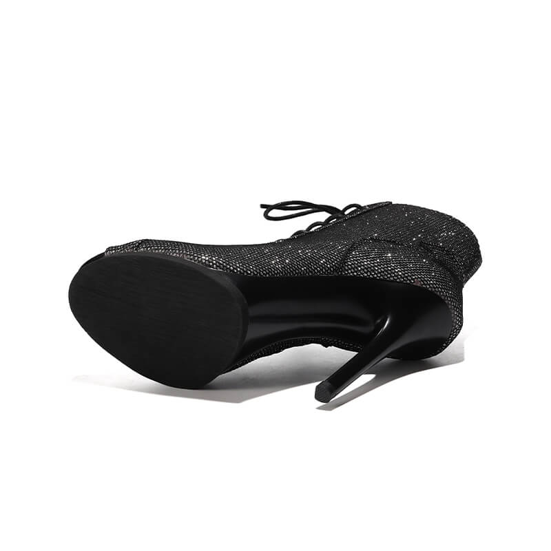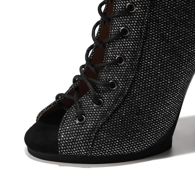 La lucentezza unica di questi tacchi si adatta perfettamente a qualsiasi look, mentre il design con lacci e la tenuta sicura del piede garantiscono il massimo comfort ed evitano infortuni durante la danza.