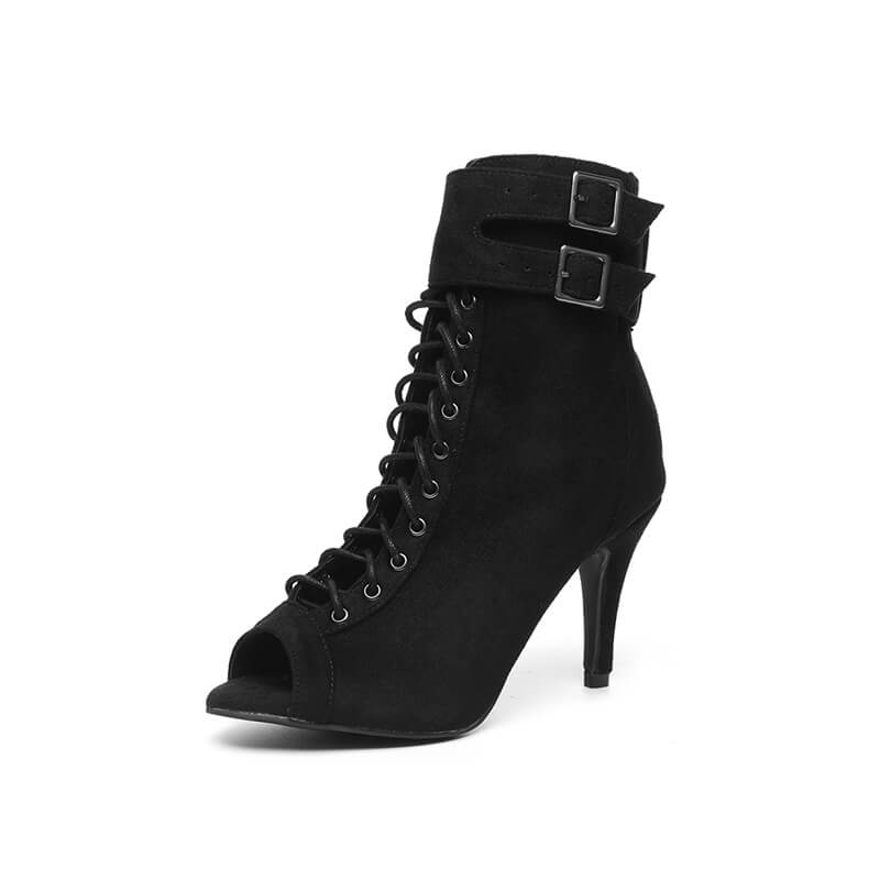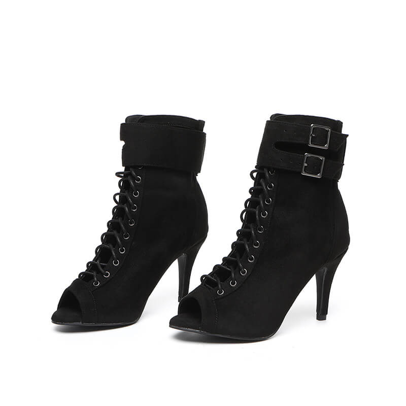Scarpe da ballo stringate nere con punta aperta con fibbia