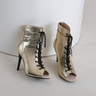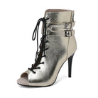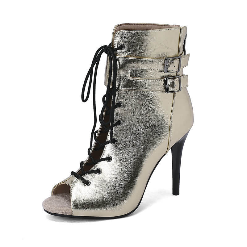 Stivaletti con doppia fibbia in metallo verniciato oro