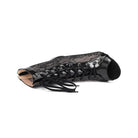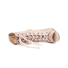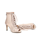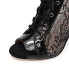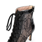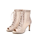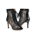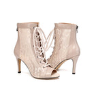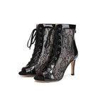Stivali da ballo a spillo con lacci e punta aperta in rete di pizzo