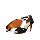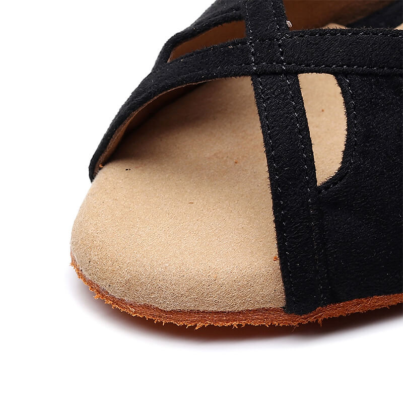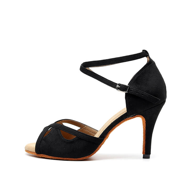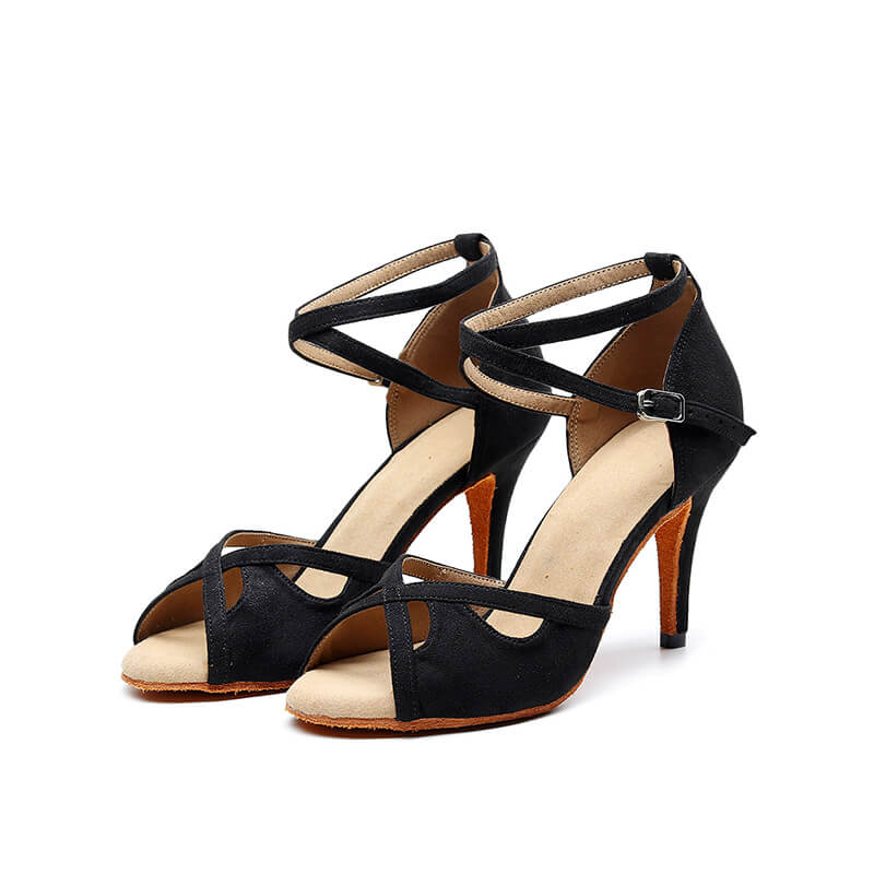 Questa scarpa è perfetta per gli amanti dei balli latino-americani che cercano comodità ed eleganza. Realizzata in camoscio nero e con tacco a spillo, è elegante e stilosa.