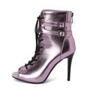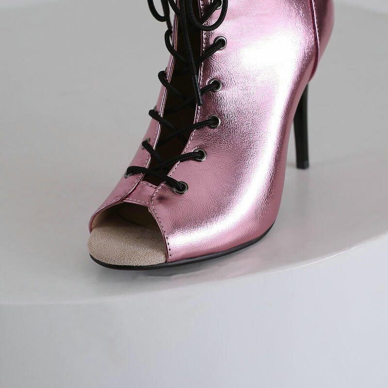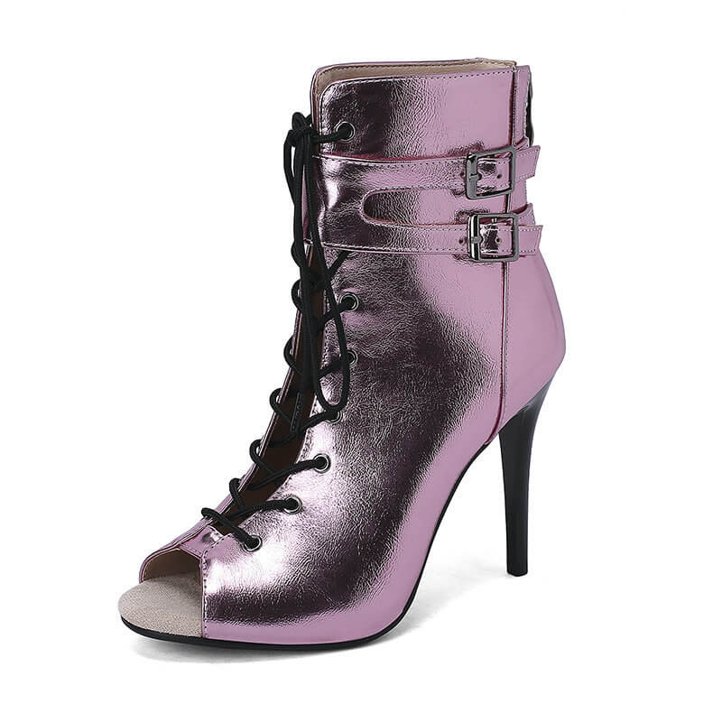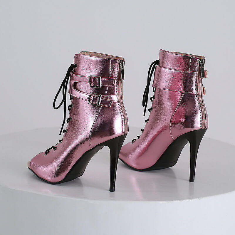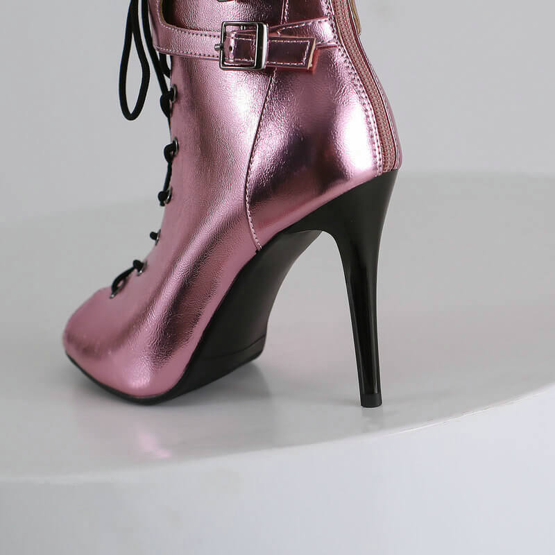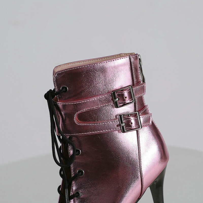 Stivaletti con doppia fibbia in metallo verniciata rosa