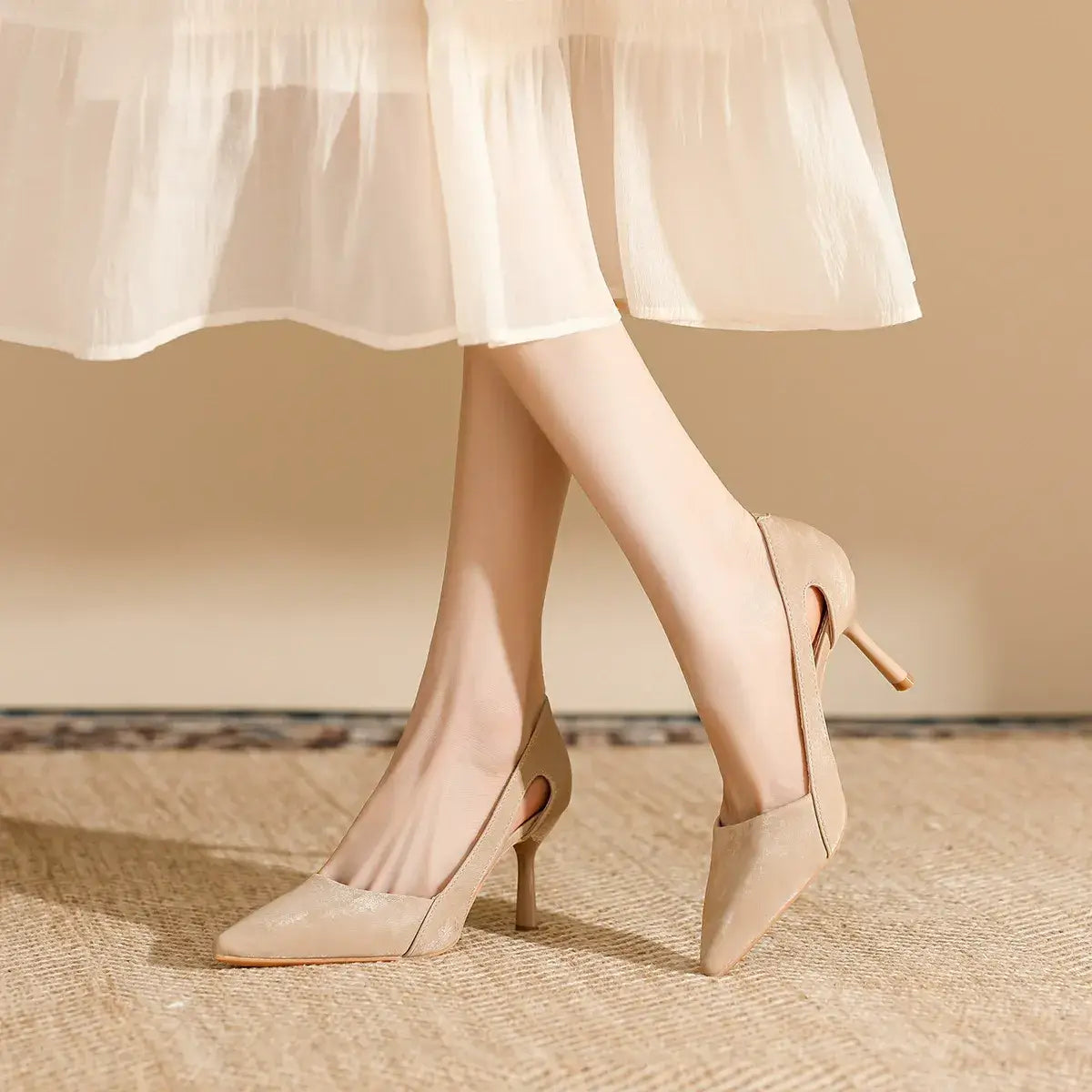 Il morbido camoscio conferisce una texture lussuosa e il design a punta lo rende ancora più raffinato ed elegante. Che si tratti di un'occasione formale o di un look quotidiano, questo tacco alto è perfetto per essere presentato.