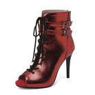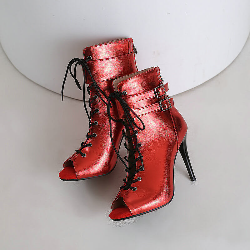 Stivaletti con doppia fibbia in metallo verniciata rossa