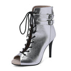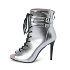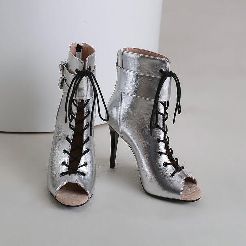 Stivaletti con doppia fibbia in metallo verniciato argento