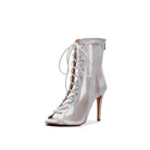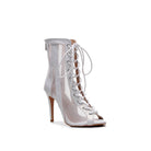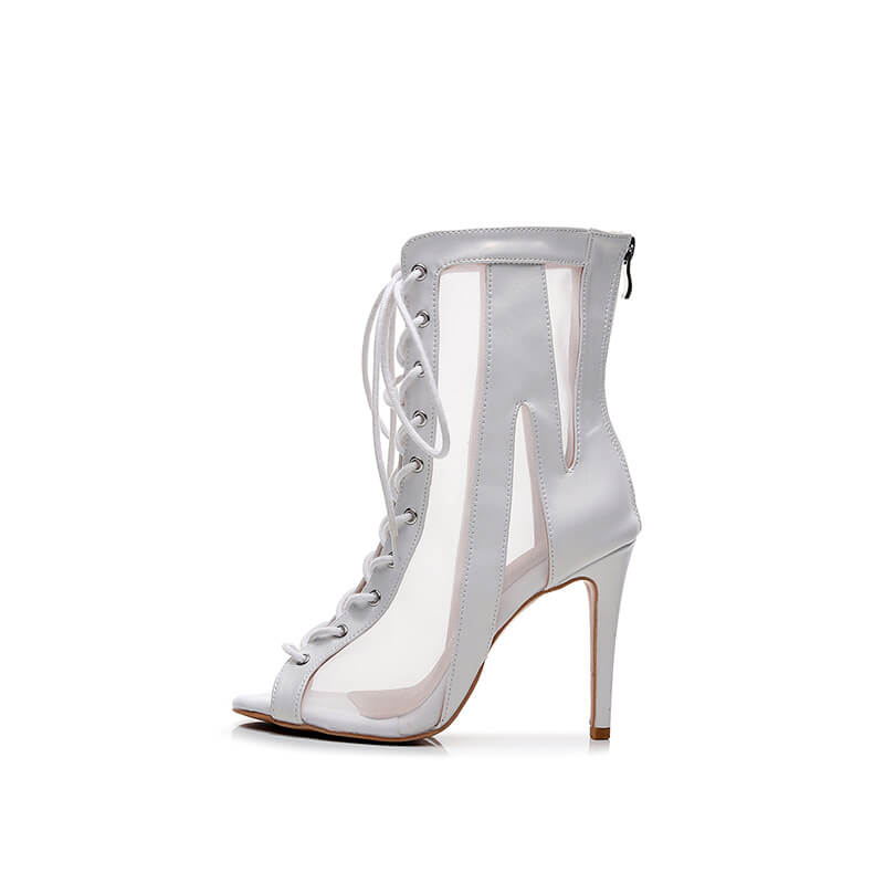Stivaletti bianchi con tacco a spillo e punta aperta