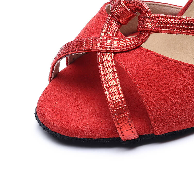 Lascia che i tuoi piedi scivolino senza sforzo sulla pista da ballo con questo paio di scarpe da ballo rosse. Il colore rosso acceso risalta sulla pista da ballo. Ti fa sentire sicura ed elegante.