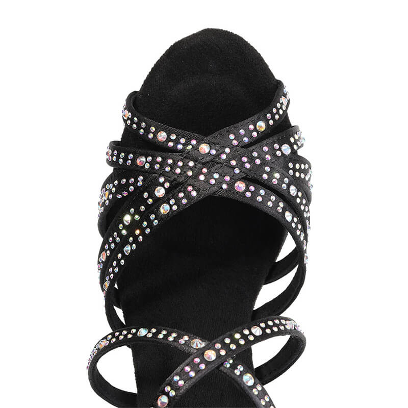 Scarpe latine da donna con strass neri