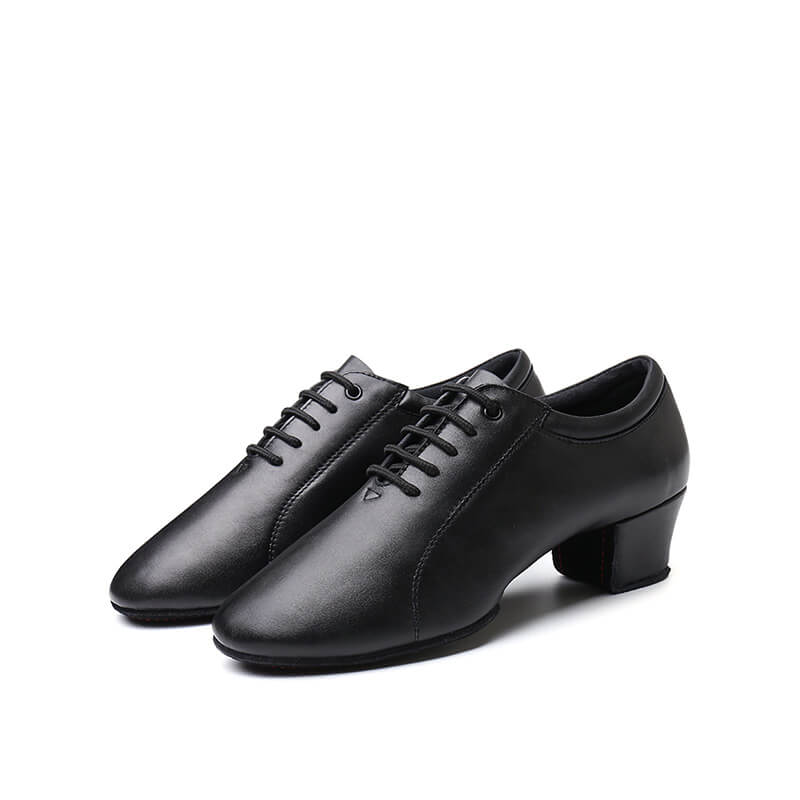 Scarpe da ballo per la pratica della sala da ballo latino con tacco cubano in pelle nera