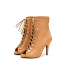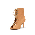 Migliora le tue performance con questi stivaletti! Il classico design open-toe aggiunge un tocco di eleganza alla scarpa. Il robusto tacco a spillo offre supporto e stile per ogni passo di danza.
