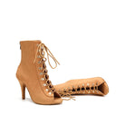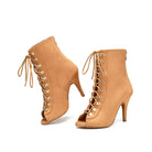 Stivali da ballo in pelle scamosciata marrone con lacci e punta aperta
