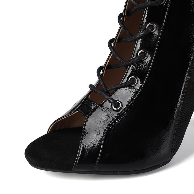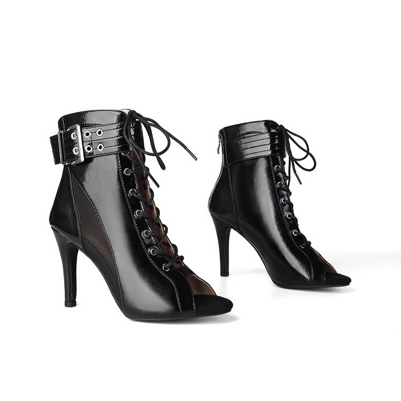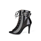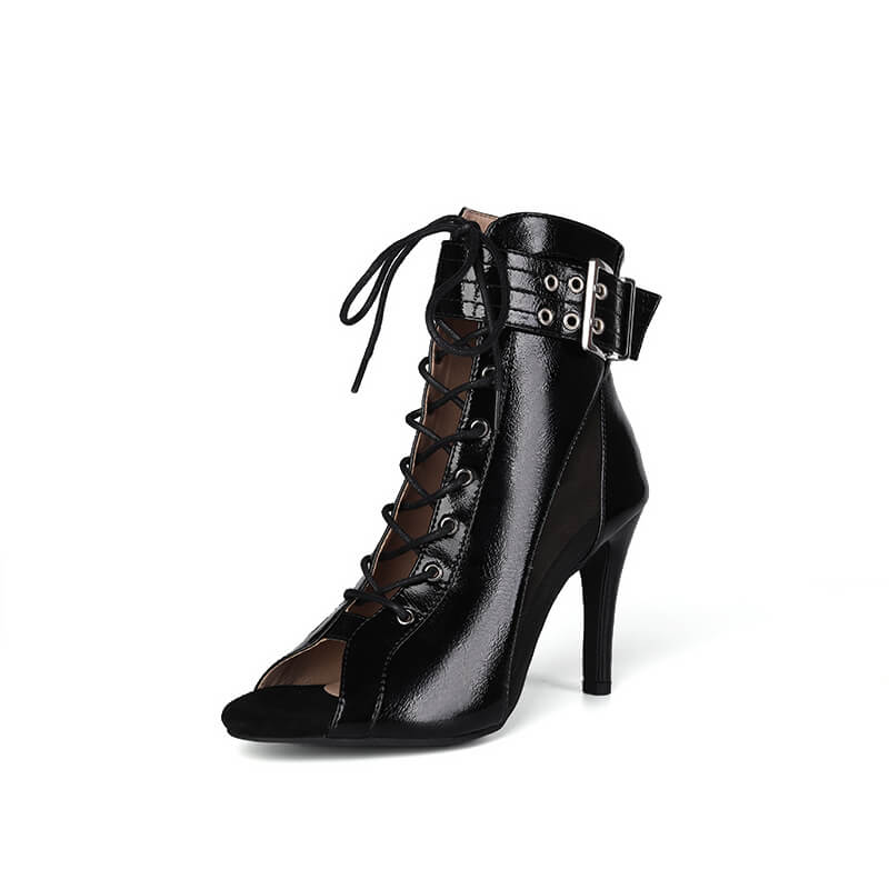 Gli stivali da danza presentano un design elegante e moderno. L'ampio cinturino alla caviglia e la robusta fibbia offrono supporto e stabilità, rendendoli adatti a ballerini di tutti i livelli.