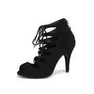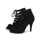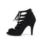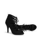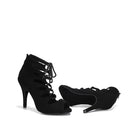 Stivaletti stringati con tacco alto in pelle scamosciata nera