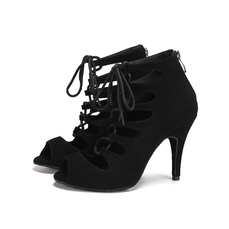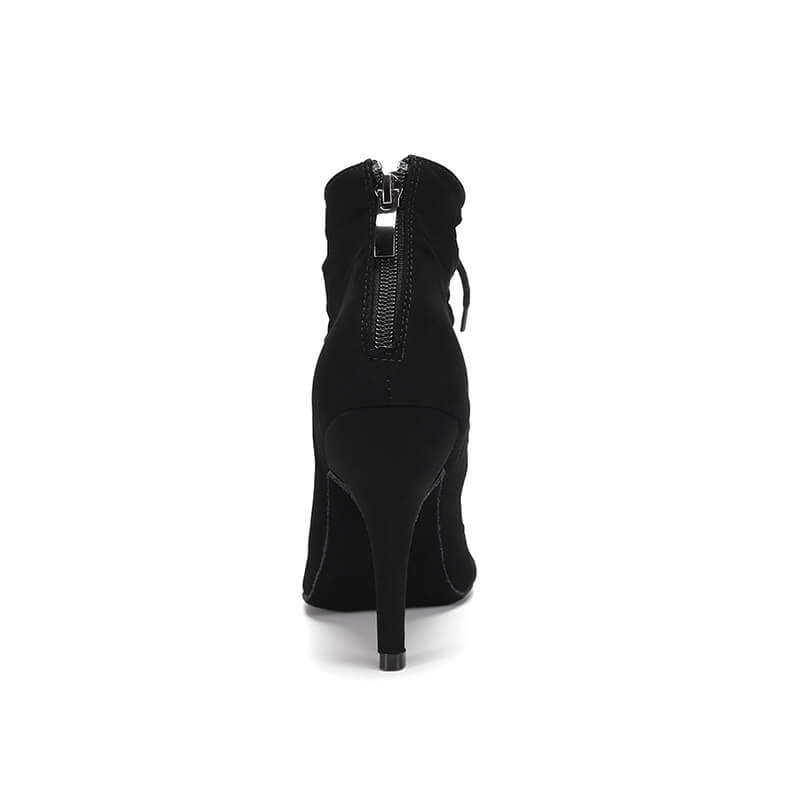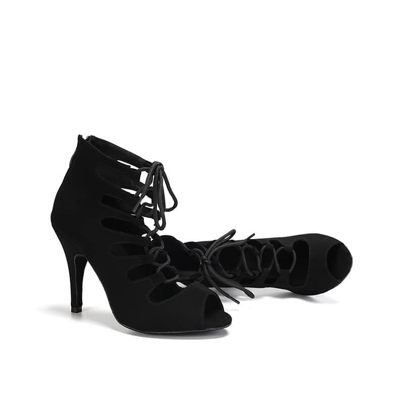 Con un esclusivo design allacciato, rivela elegantemente il piede. Il pregiato camoscio nero aggiunge un tocco di lusso misterioso alla scarpa. Indossa questo stivale di tendenza e sarai sempre alla moda.