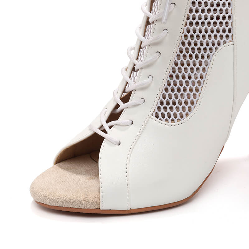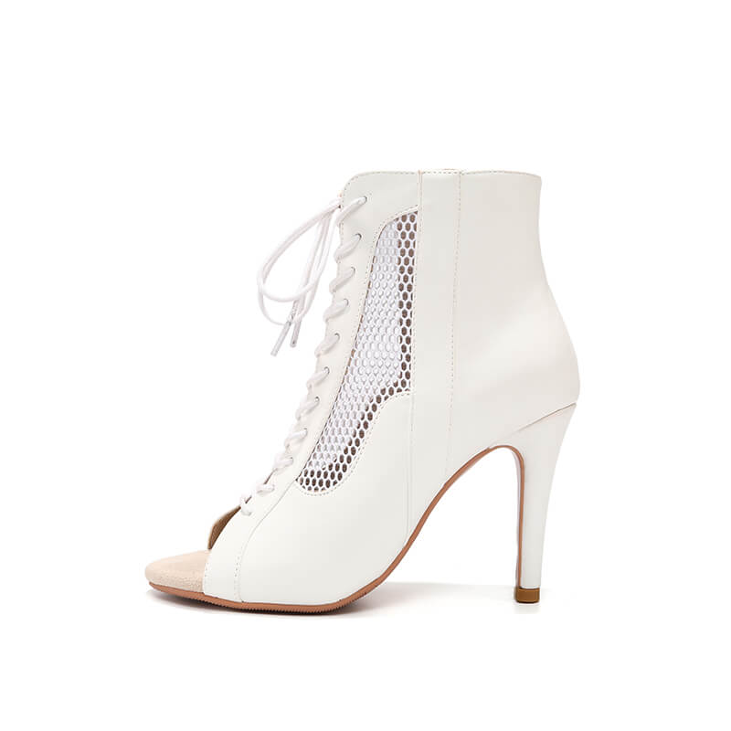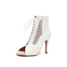 Scarpe da ballo con lacci e tacco a spillo bianco cavo