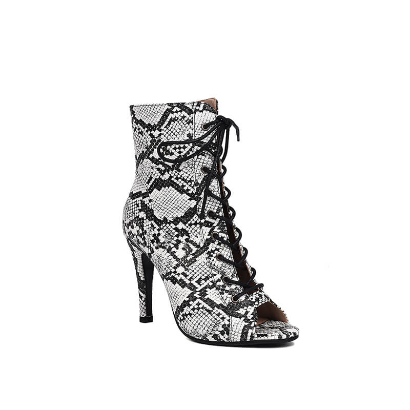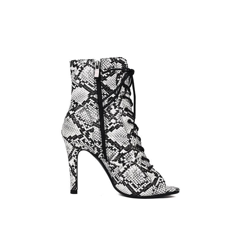 Stivali da ballo con tacco alto in pelle di serpente bianca