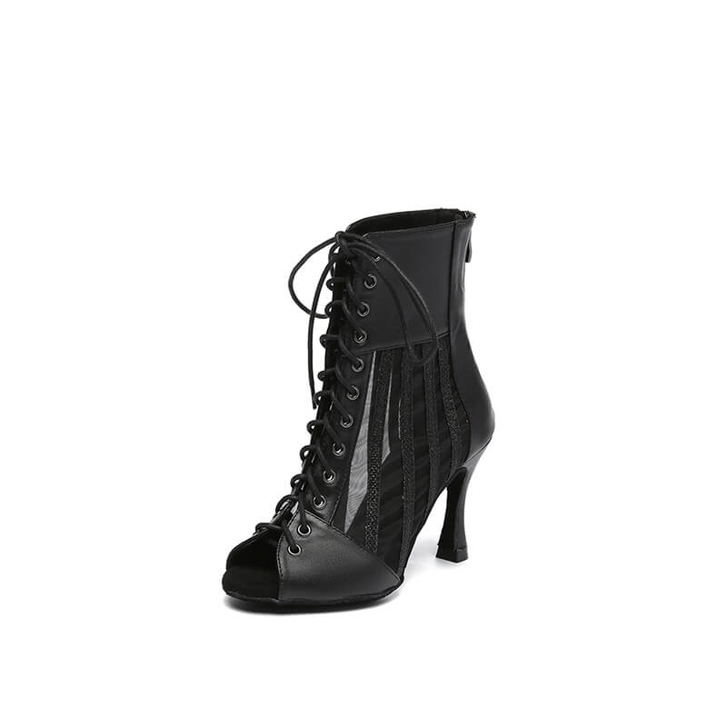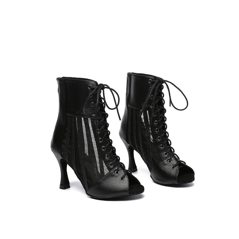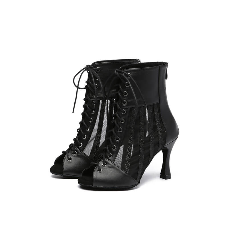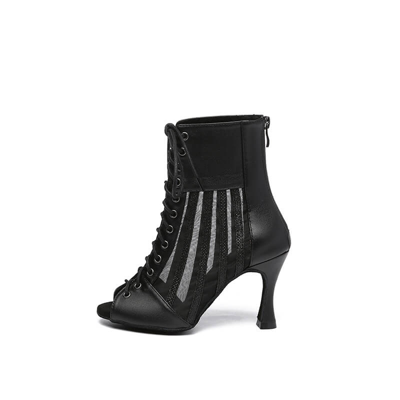 Questi stivali saranno un'aggiunta fantastica al tuo guardaroba. Con un elegante tacco svasato e realizzati in una combinazione di pelle e mesh, sono allo stesso tempo eleganti e funzionali.