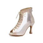 Stivali da ballo da donna con tacco alto e lacci in rete