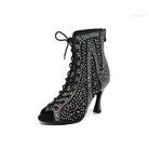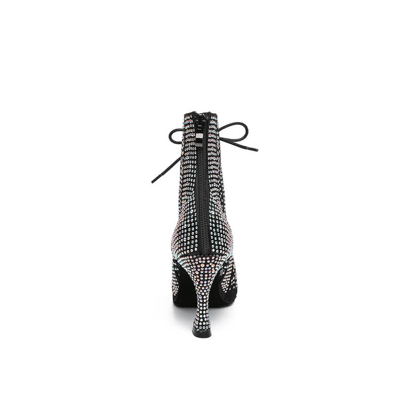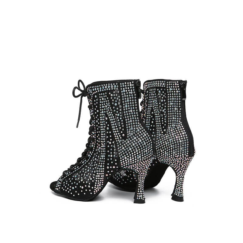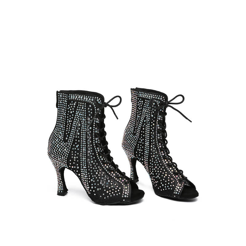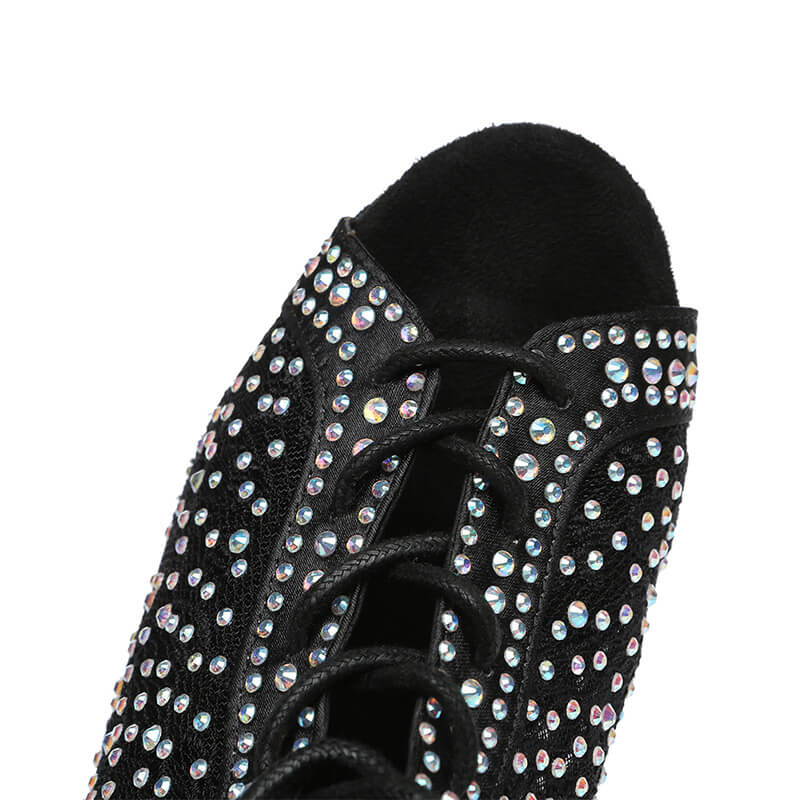 Stivaletti da ballo latino con lacci e strass neri