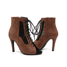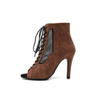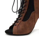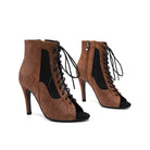 Scarpe da ballo con lacci e tacco a spillo marrone