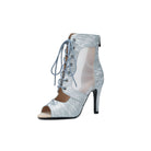 These shimmering, mesh-paneled dance boots combine ethereal elegance with superior performance. They capture light with every movement of the dancer, creating a captivating visual effect on stage or in the dance studio.
